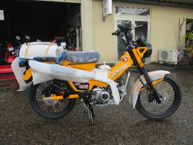 ご紹介遅れてましたが年末に2024年ホンダ新色のダックス125(ブルー)、モンキー125(レッド)、CT15ハンターカブ(イエロー)、ヤマハXSR125(シルバー)が入荷しております
